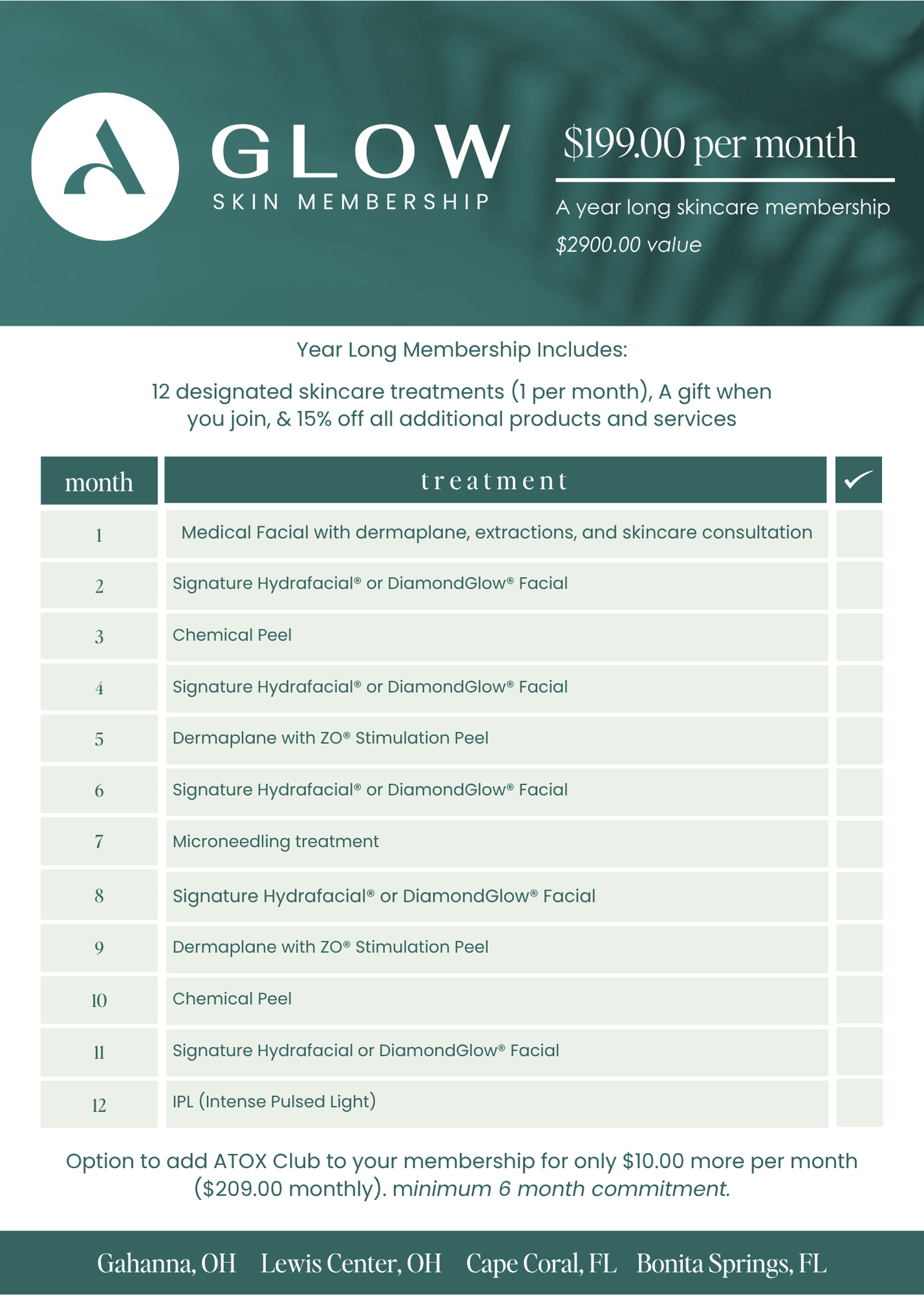 12 designated skincare treatments (1 per month)